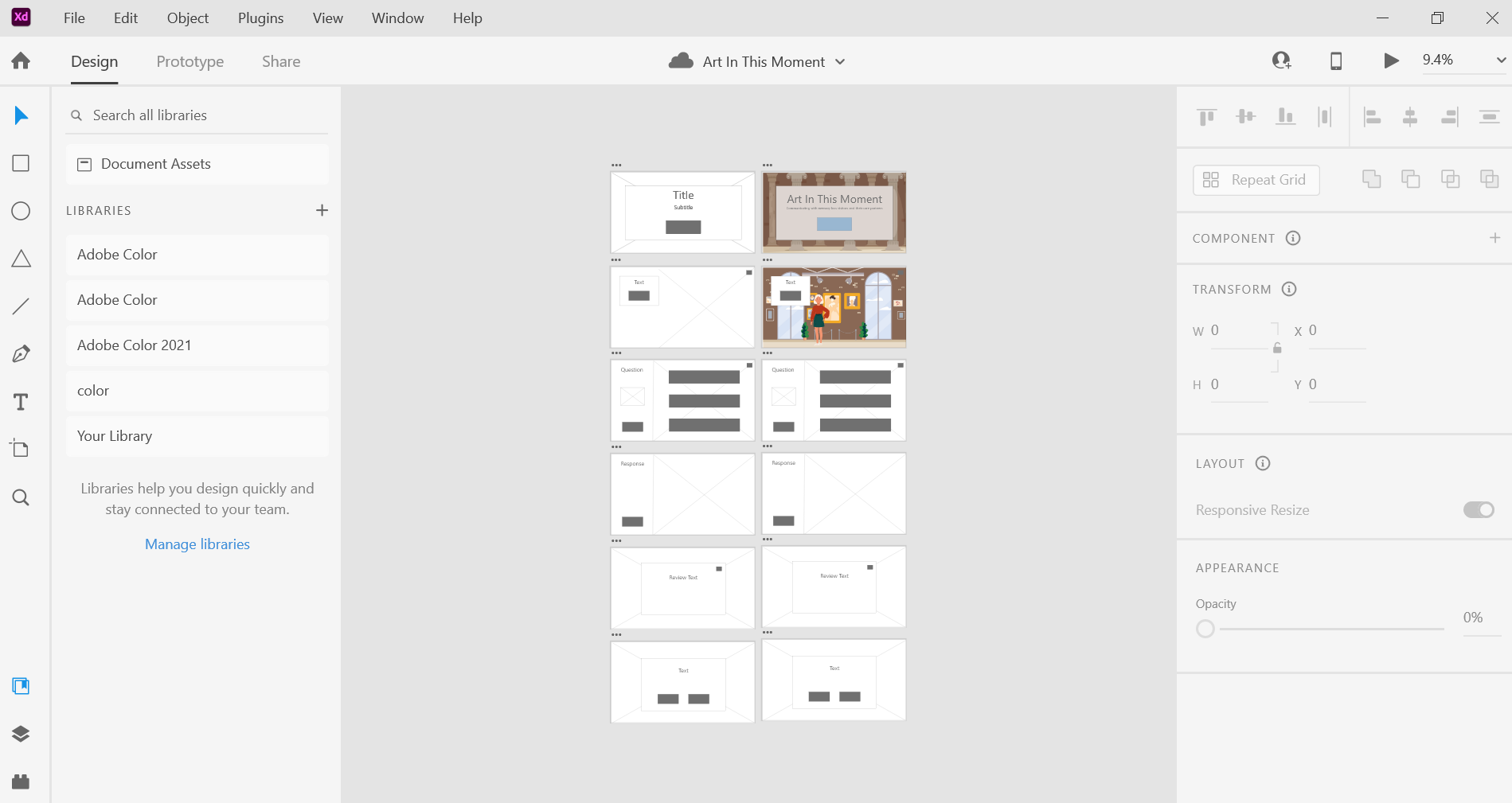 Next, I am creating the wireframes in Adobe XD. The next step in XD will be iteration.